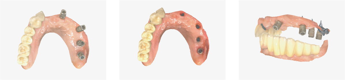 Met de AI scan functie herkent en filtert de software automatisch onnodige zachte weefseldata tijdens het scannen. Dit resulteert in een sneller scanproces met een duidelijker beeld! Tevens kunt u met één klik een 3D-printbasis/ model met de scanner software ontwerpen zonder ingewikkelde externe ontwerpsoftware. Eenvoudig en snel! Ook is het mogelijk om implantaten/scanabutments te importeren met één klik, zodat u de juiste data heeft en het aantal remakes beperkt.