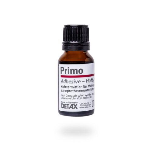 Detax Primo is speciaal ontwikkeld voor het verbeteren en garanderen van de hechting van Molloplast B aan kunstharsprotheses. Dit hechtingsmiddel is bijzonder geschikt bij herhaaldelijke reparaties, uitbreidingen en rebasingen van acrylaten. Dankzij de geïntegreerde borstel is het product eenvoudig en nauwkeurig aan te brengen, wat zorgt voor een optimale verbinding tussen de zachte voering en de prothesebasis.
