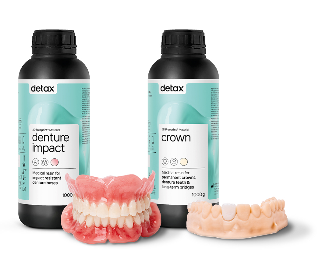 Detax Denture Impact en de Detax Freeprint Crown bundle – The bundle for durable denture bases and permanent crowns!
