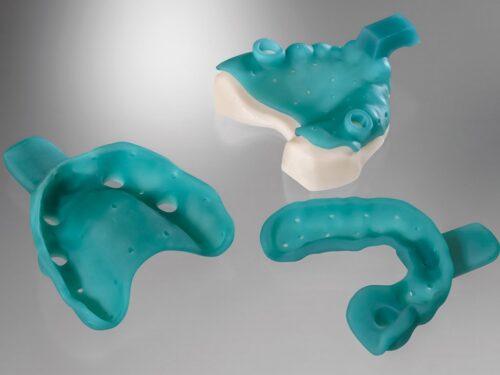 The Detax tray 2.0 is therefore also ideal and perfectly suited for a digital implant impression. The Detax Tray 2.0 can even be printed at 200 μm layer thickness. Suitable for all impression materials, odorless and tasteless. The new Detax fluids such as this freeprint tray 2.0 are already MMA and THF-MA free and meet the Class 1 medical device certification.