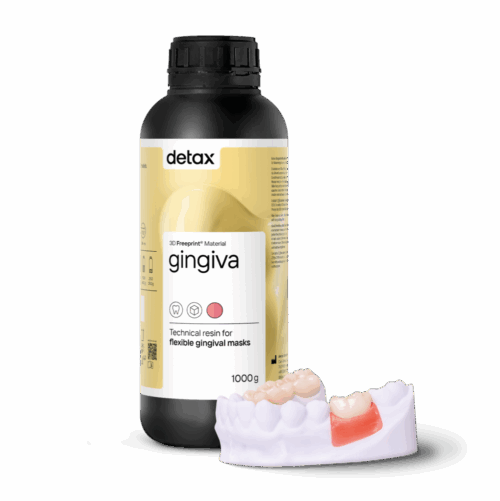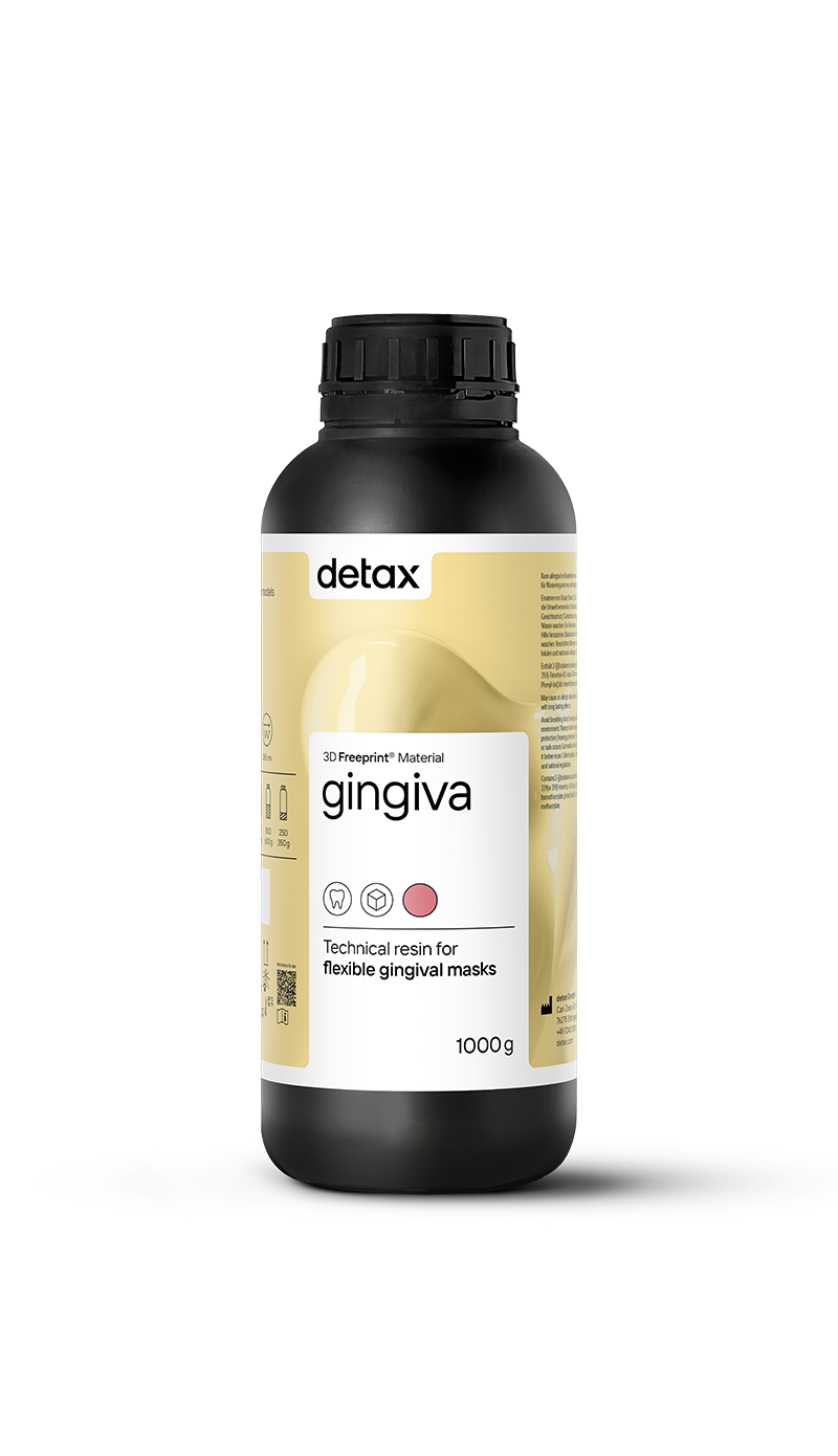 The Freeprint Gingiva is a 3D resin for the digital production of dental flexible soft tissue products. The Freeprint Gingiva is available for all LED / UV printers with a light spectrum of 385 UV (378-388) nm such as DLP and SLA systems. The Freeprint gingiva is very precise in detail.