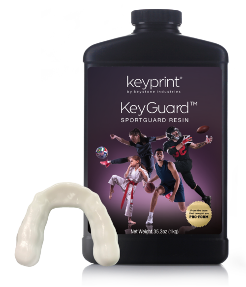 The Keyprint KeyGuard is a 3D printing resin for the digital production of the sports mouthguard. The Keystone Keyprint Keyguard is a printing liquid that makes it possible to produce and reproduce the sports mouthguard protector in various thicknesses.