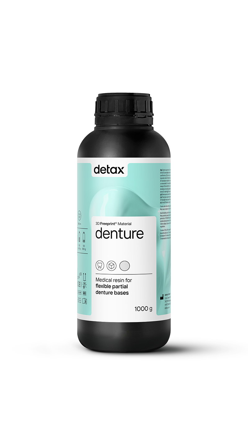 denture van Detax is een zeer stabiele resin die op lange termijn stabiliteit geeft in kwaliteit en kleur. De geprint resin is geur en smaakloos, uitstekend bestand tegen orale condities en is geheel MMA vrij.