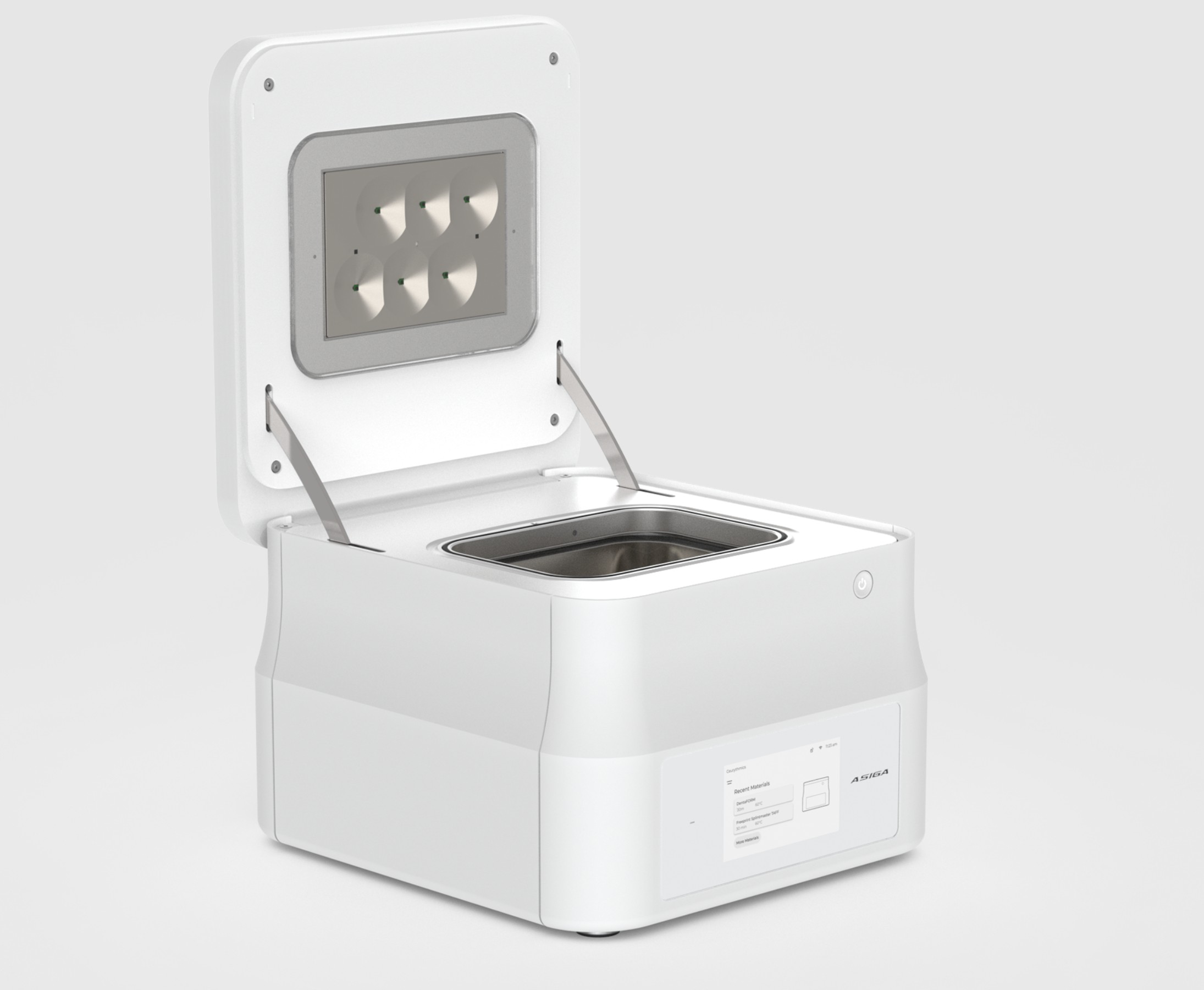 De Asiga Cure is een uithardingsapparaat voor het nabewerken van 3D-geprinte producten. Het wordt gebruikt voor modellen, boormallen, splints, beschermers, prothesebases, partiële en flexibele protheses, lepels, kroon- en brugwerk, evenals diverse medische en niet-medische toepassingen.