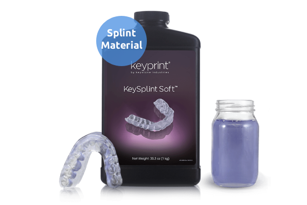 Keystone heeft met de KeySplint Soft een uniek en gepatenteerde 3D printhars ontwikkeld voor de digitale productie van flexibele splints, spalken, nachtbeugels en gebitbeschermers. Keysplint soft is een geoptimaliseerde hars uitzonderlijk materiaal met flexibiliteit en kracht. De Keysplint soft heeft een geoptimaliseerde .ini file voor kwalitatieve prints met printers zoals Asiga Max en Asiga Pro4K maar ook printers zoals de Carbon. De geoptimaliseerde .ini file is gecreëerd met uitzonderlijke instellingen voor de generatie van support structuren. De supports zijn makkelijk lossend zonder al te veel na behandeling. De geprinte keysplint modellen zijn makkelijk af te werken voor een mooi eind resultaat.