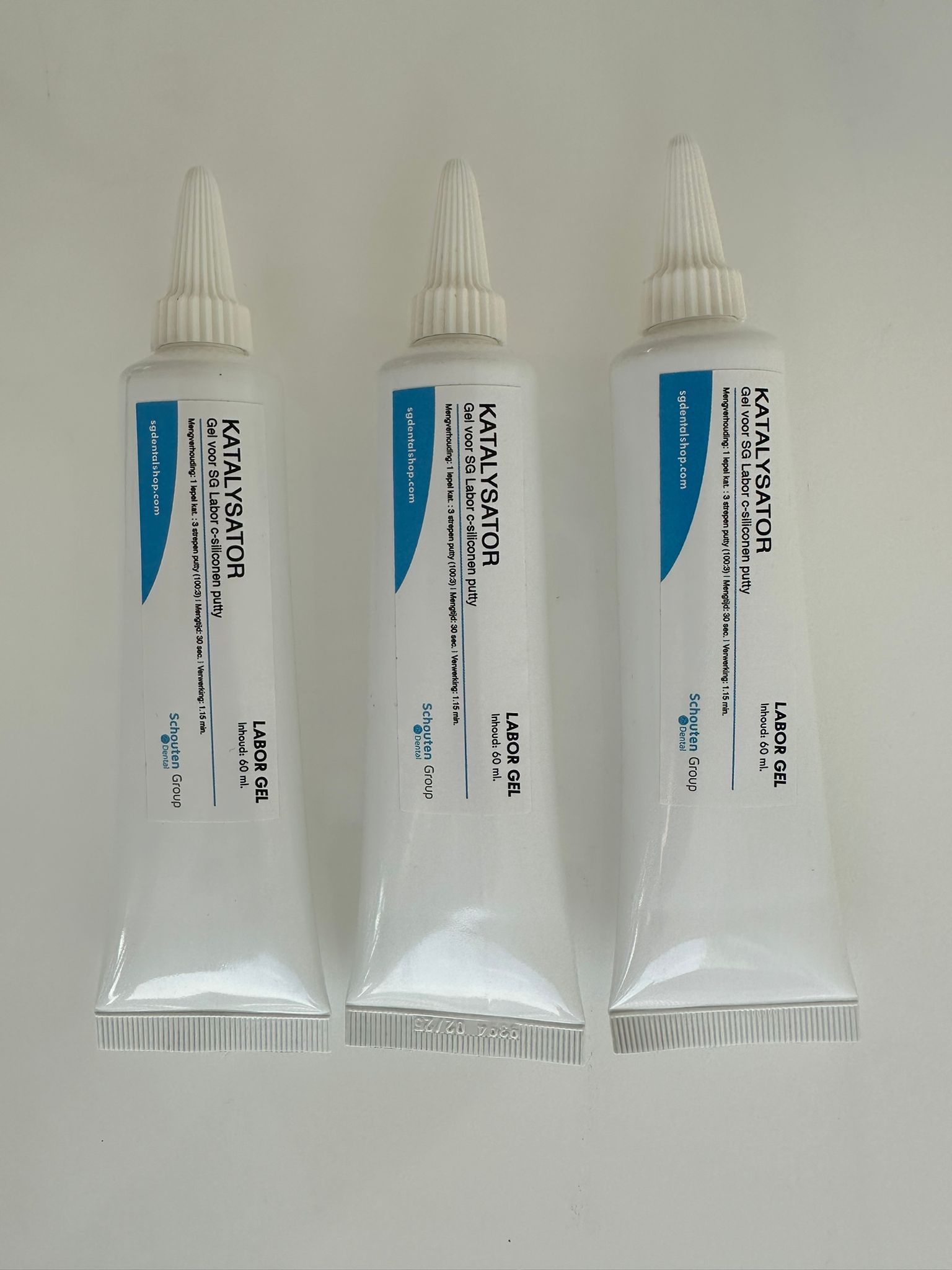 De SG labor 85 is een kneedbare condensatie siliconen met een Shore hardheid van A 85. Deze putty is uitermate geschikt voor het vervaardigen van controlebeten, voorwallen, modellen voor prothese reparaties of het isoleren van kunststof tanden bij het inbedden van cuvetten. Meng deze siliconen in de verhouding 1 lepel: 3 strepen katalyst. Door de twee kleuren per component heeft u een goede mengcontrole, er moet immers een homogeen mengsel ontstaan.
